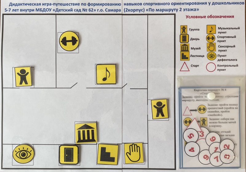 Баранова Ольга Ивановна. Дидактическая игра-путешествие по формированию навыков спортивного ориентирования у дошкольников 5-7 лет внутри МБДОУ «Детский сад № 62» г.о. Самара (2 корпус) «По маршруту 1 этажа», «По маршруту 2 этажа»