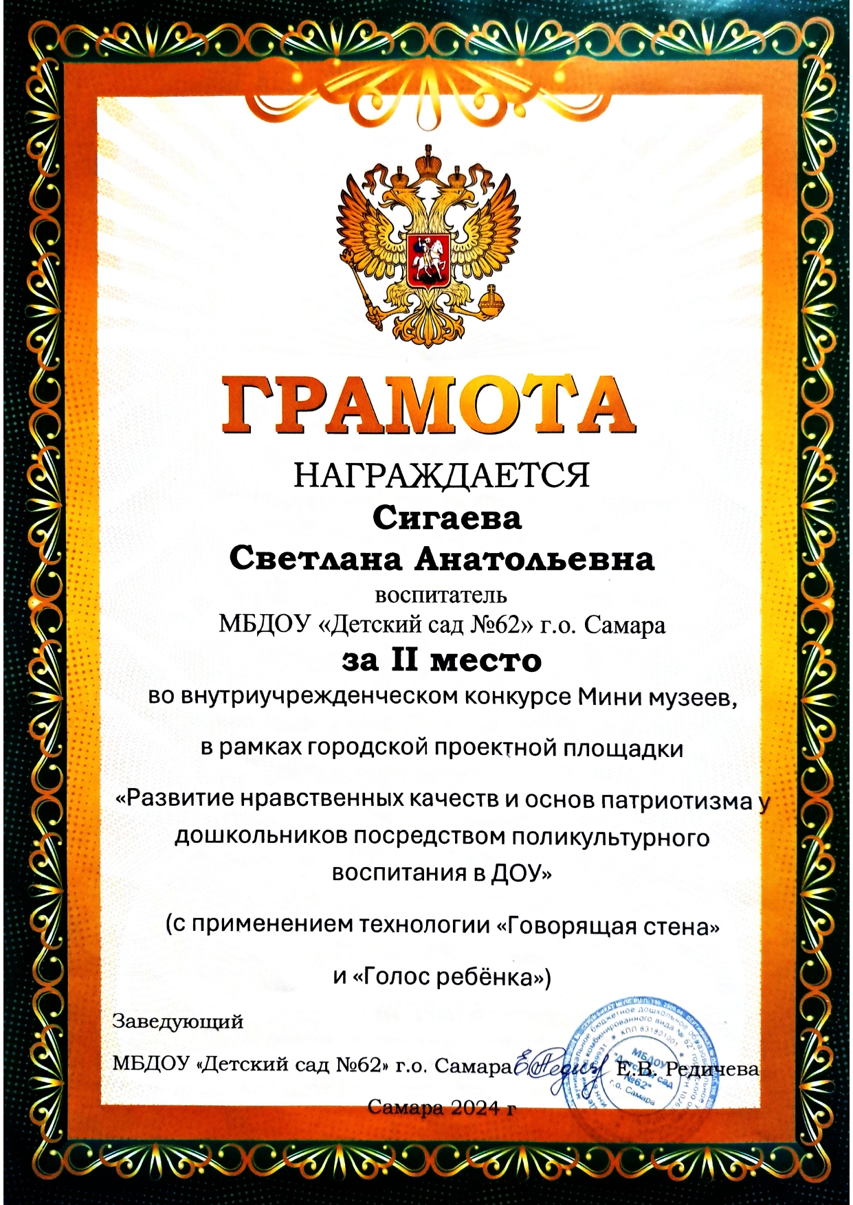 Достижения и награды воспитателя