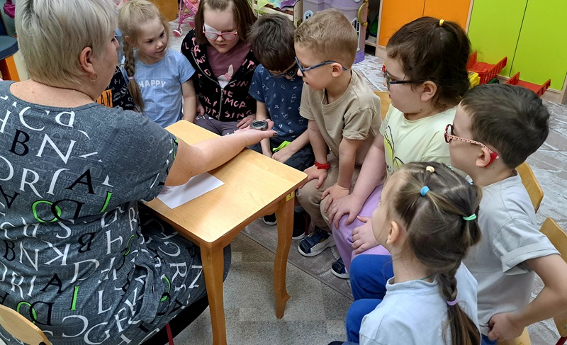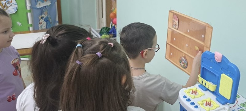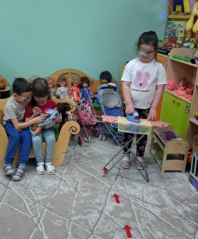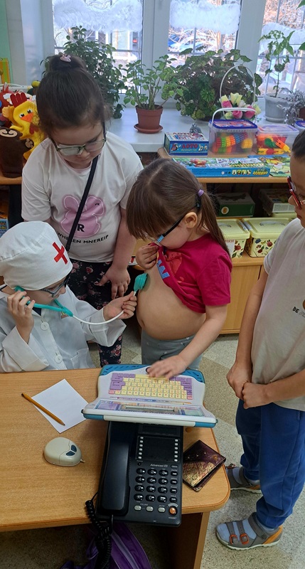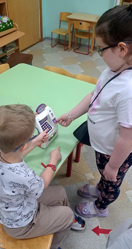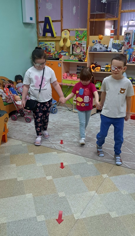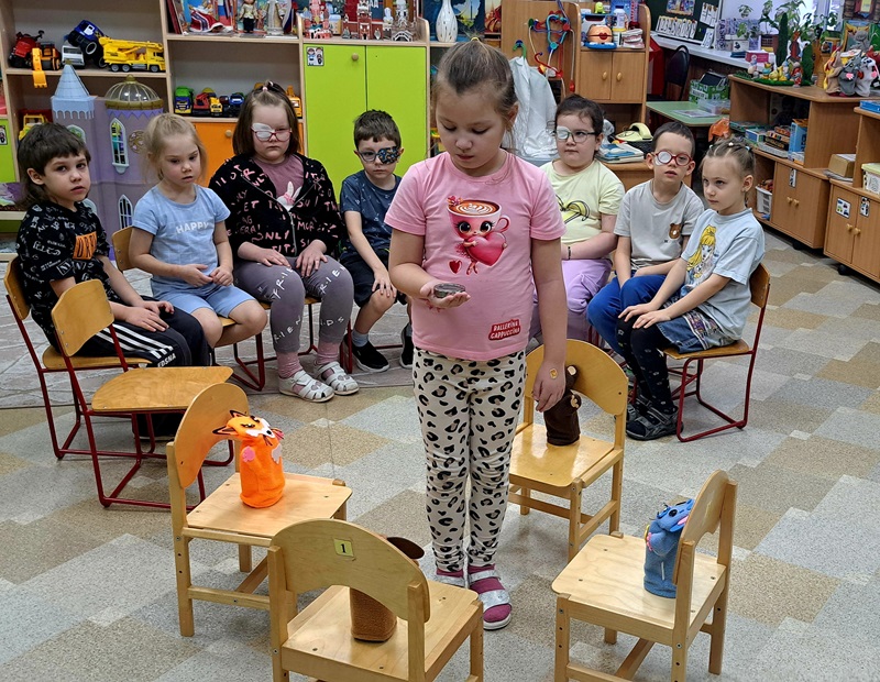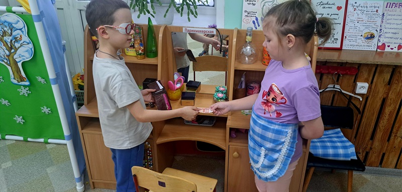 На неделе «Финансовая грамотность» воспитатель Сигаева С.А. провела сюжетно-ролевую игру с детьми с нарушением зрения, которая направлена на развитие пространственной ориентировке в группе. Дети следовали по стрелкам, указывающие маршрут: банк, парикмахерская, магазин, больница, дом. В игре дети учились самостоятельно снимать деньги в банкомате, расплачиваться ими за оказанные услуги.
