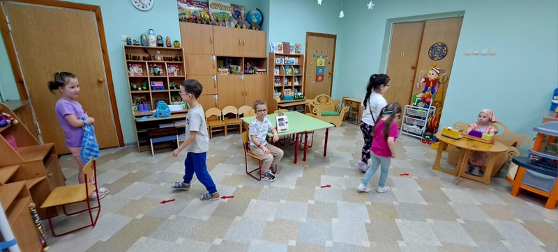 - Разминка: упражнения на ориентацию в пространстве («подними правую руку», «шаг вперёд, два шага влево»).