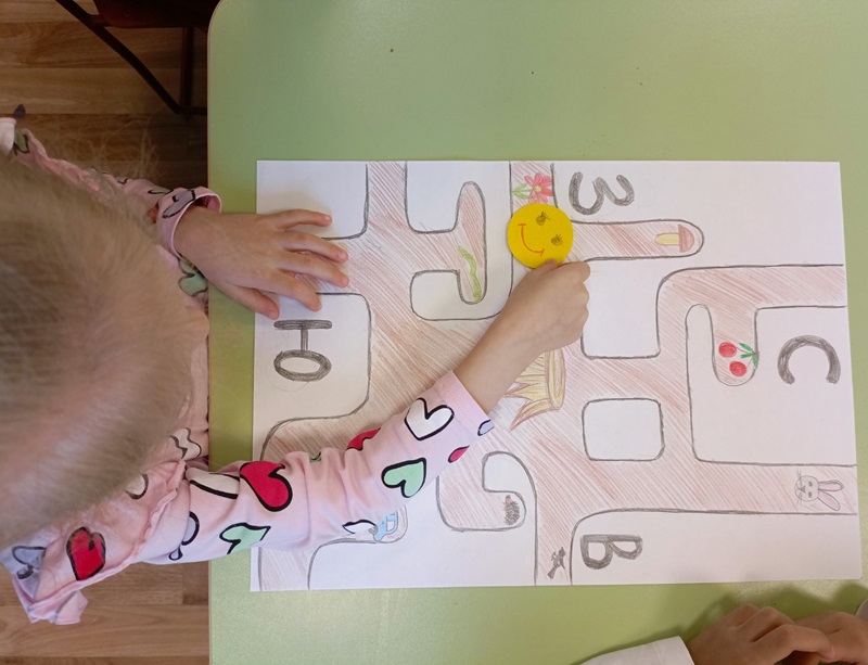 Блоки Дьенеша, как первоначальное ознакомление с работой по карте, схеме, ориентировка на листе бумаге. В процессе игры с блоками, дети учатся смотреть на схему и ориентироваться в пространстве, что и где находится.