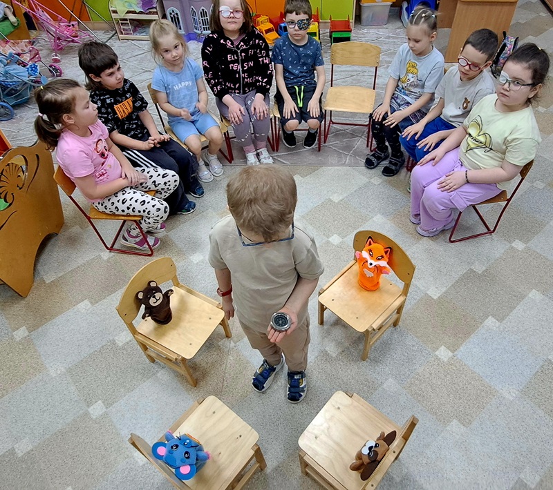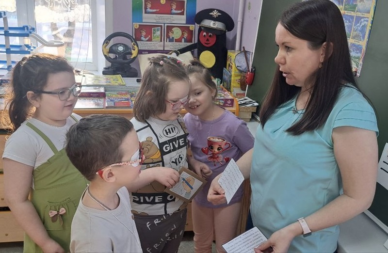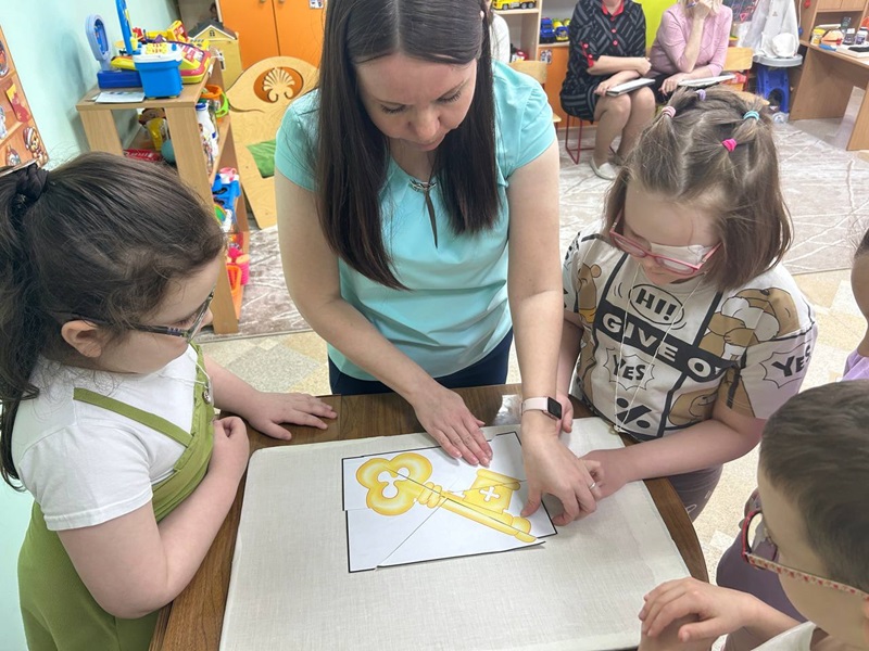 Учитель-дефектолог Баранова О.И. в старшей-подготовительной группе с нарушением зрения (подготовительный возраст) провела открытое занятие, которое было направлено на развитие микро и макро пространственной ориентировки. На занятии ребятам были предложены разнообразные игры и упражнения. Дети проявляли активность, эмоционально реагировали на задания, активно использовали имеющиеся знания и умения.