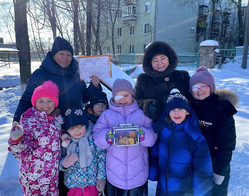 Воспитатели старшей-подготовительной группы с нарушением зрения Сигаева С.А. и Солдатова Л.В. провели на улице квест-игру по спортивному ориентированию «В поисках клада».