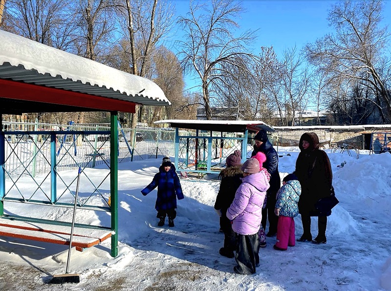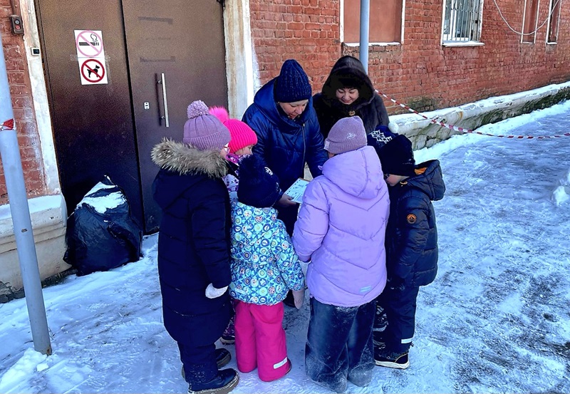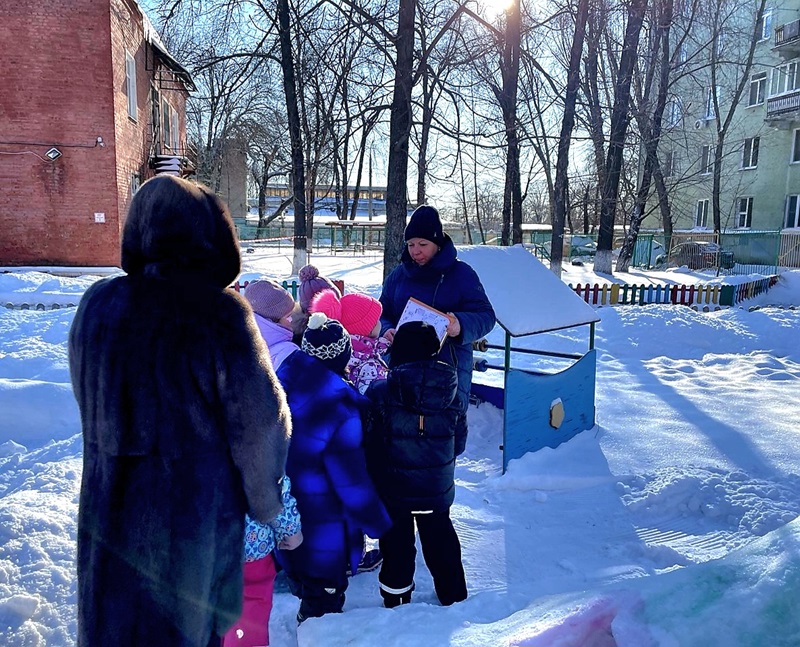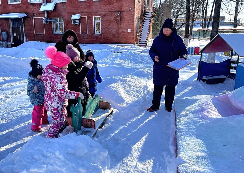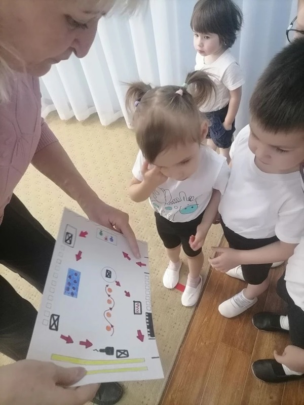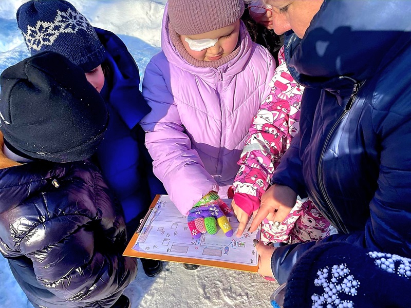 Детям была предложена карта заднего двора участка детского сада. Ребята вместе с педагогами рассмотрели карту, обратили внимание на направление движения по компасу и отправились в путь.