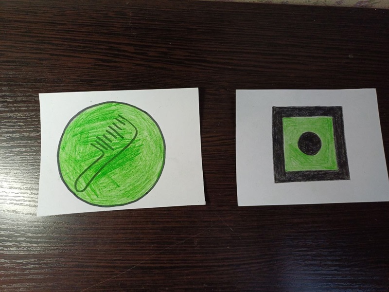 Этап 1. Коллективное обсуждение: какие объекты есть на участке детского сада (деревья, качели, песочница, беседка). Выбор условных обозначений для них (например, кружок — дерево, прямоугольник — скамейка).