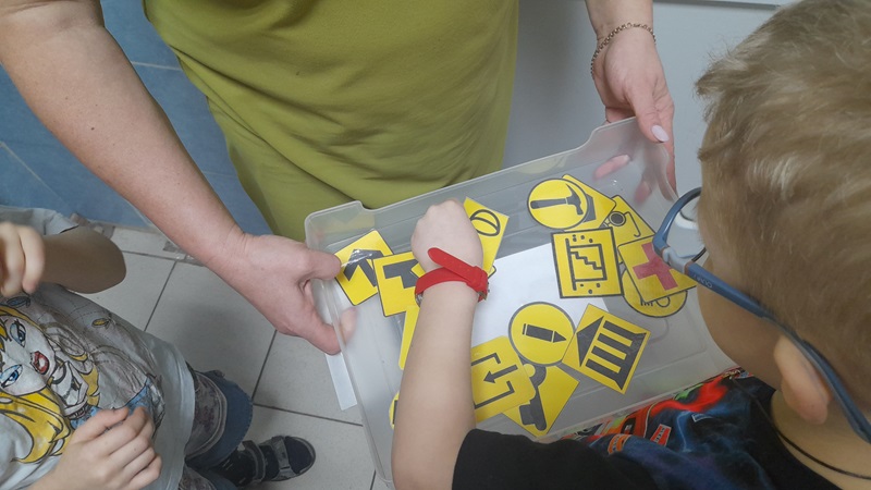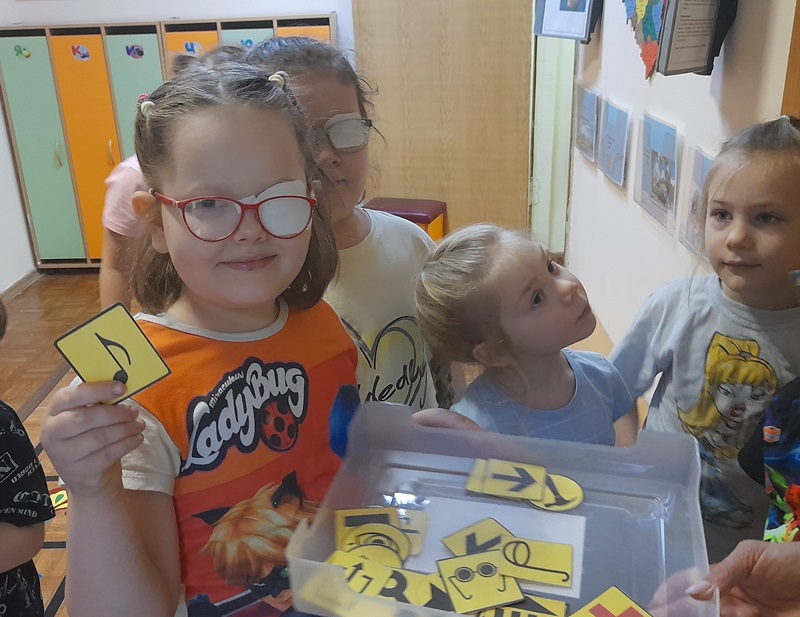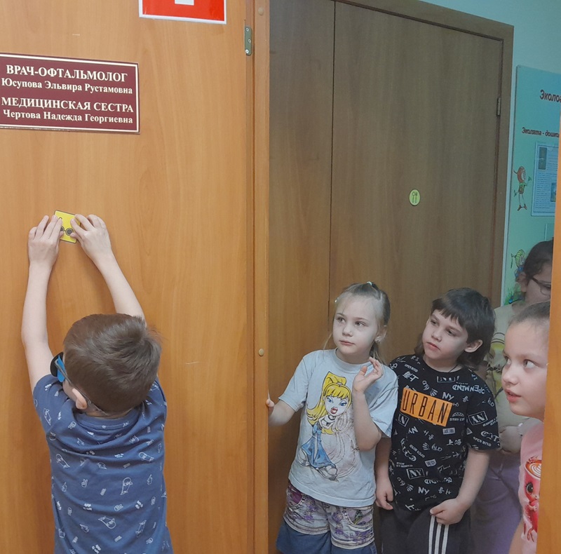 Воспитатель Солдатова Л.В. познакомила детей старшей-подготовительной группы с нарушением зрения с условными обозначениями для спортивного ориентирования в здании детского сада. Затем дети совместно с воспитателем отправились находить и обозначать пункты соответствующие им.