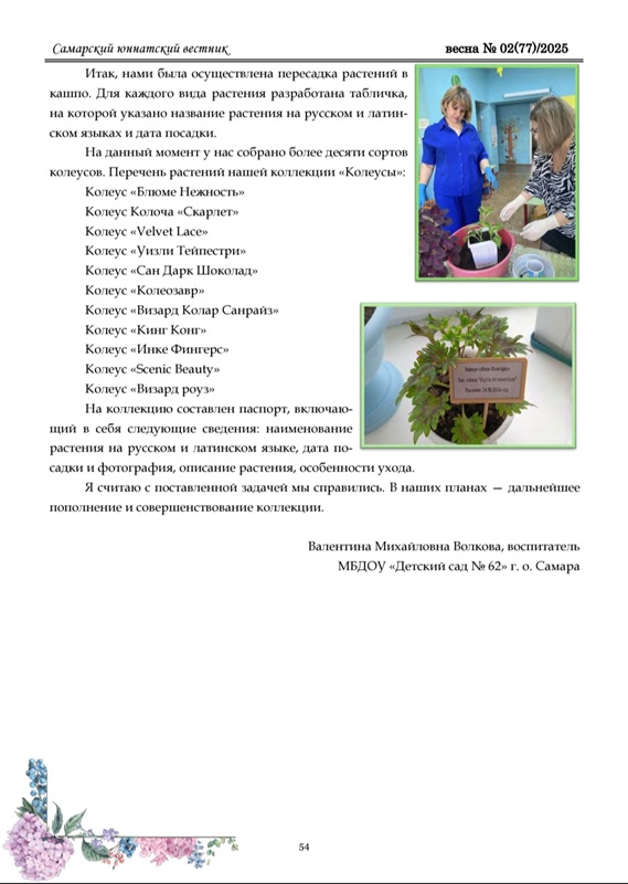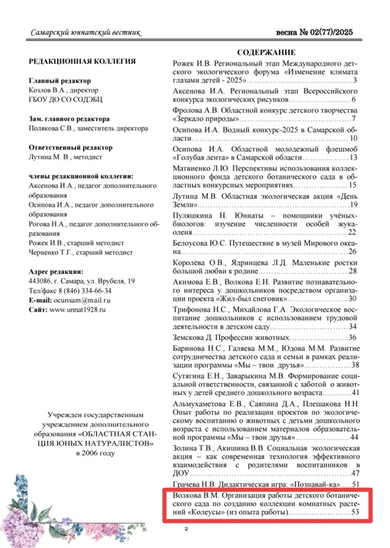 Публикация в областном экологическом журнале «Самарский юннатский вестник» весна 2025 г.